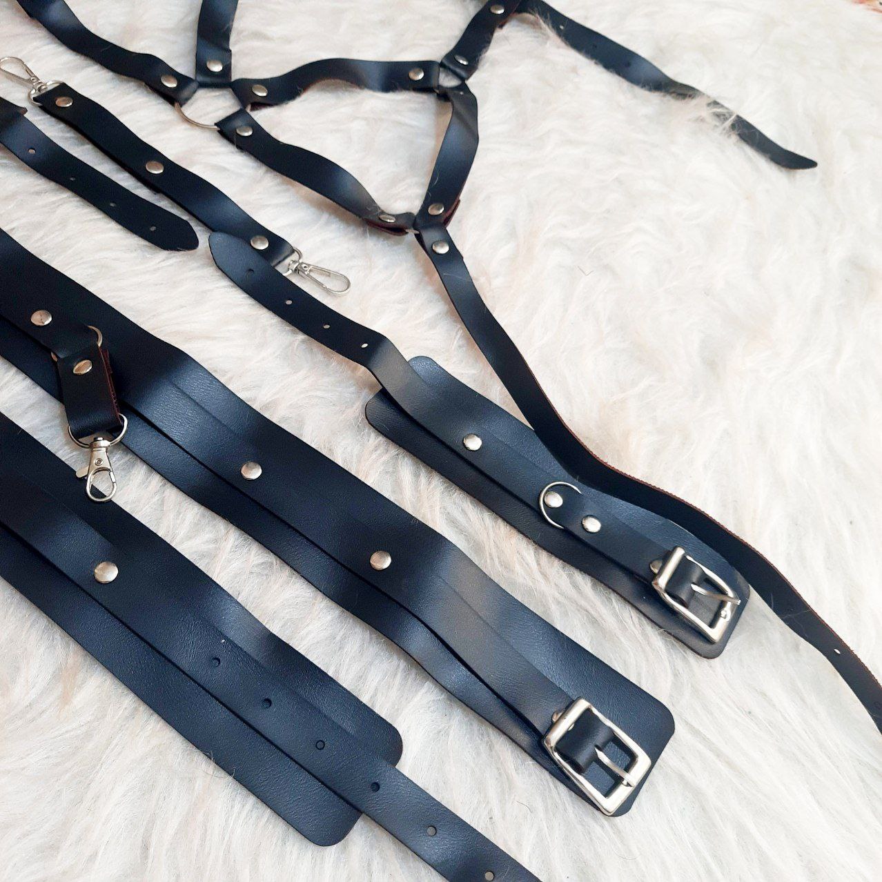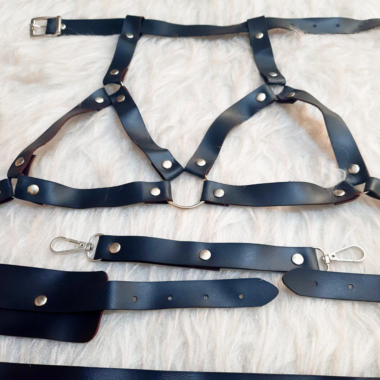 این ست هارنس سینه و ران ۶ تکه زیبا و جذاب با کد 9878 / 214 از جنس چرم مصنوعی قابل تنظیم سایز از 36 تا 44 میباشد.