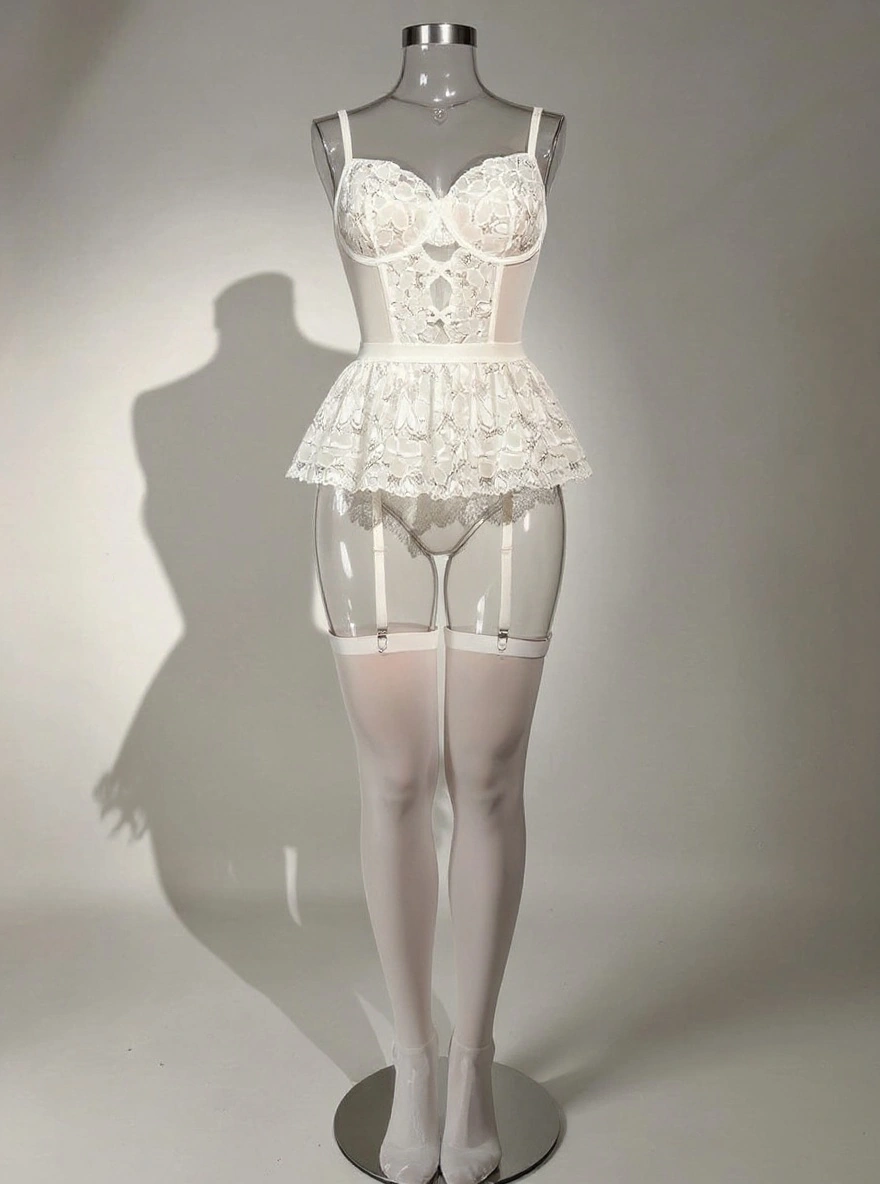 قسمت سینه فنردار، دامنی، قسمت فاق قزن دار بکلس، با بند جوراب متصل