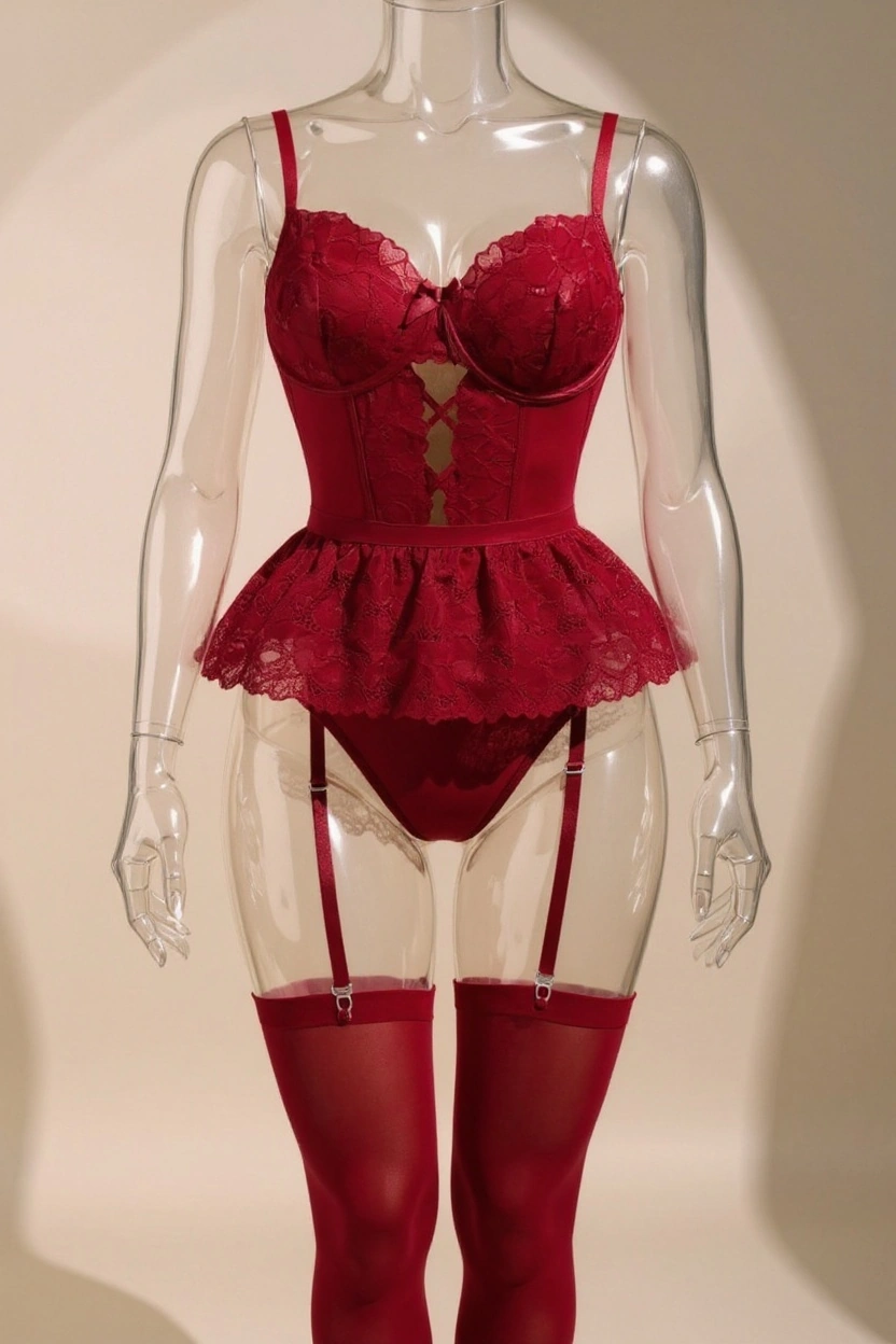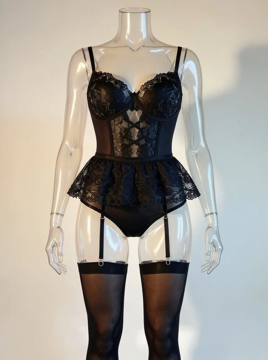 مدل بادی: قسمت سینه فنردار، دامنی، قسمت فاق قزن دار بکلس، با بند جوراب متصل