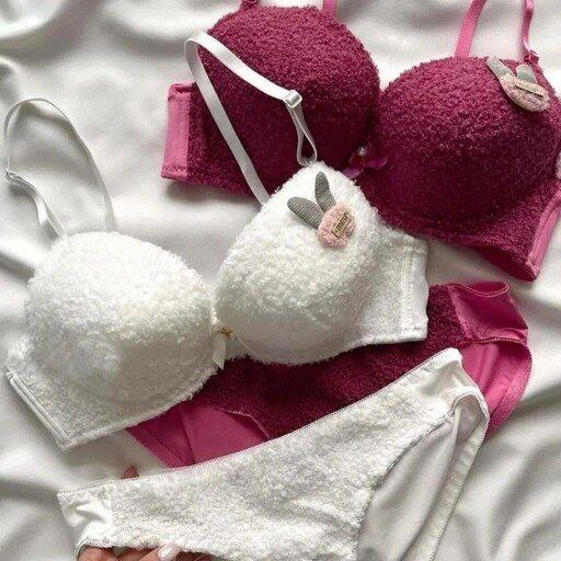 این ست شورت و سوتین عروسکی اسفنجی مدل تدی و جکدار فنردار در رنگبندی زیبا و سایزبندی ۸۰ تا ۹۰ بوده جنس خارج سوتین پارچه تدی با کیفیت دوخت و تن خور عالی میباشد.