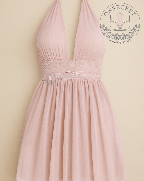 مدل بالاتنه: بند سرشانه پشت گردنی، پشت تا بالای کمر باز، زیر سینه نوار گیپور