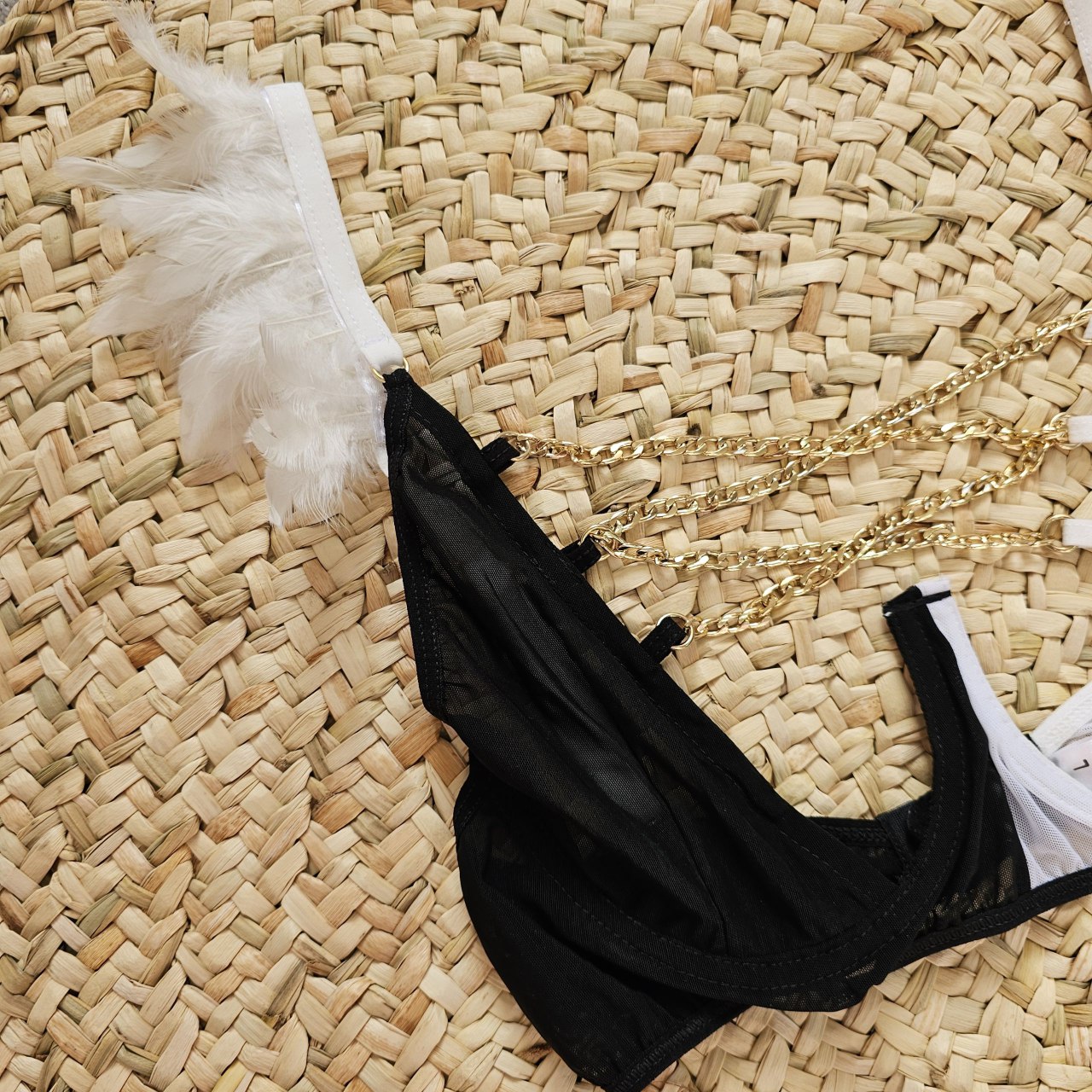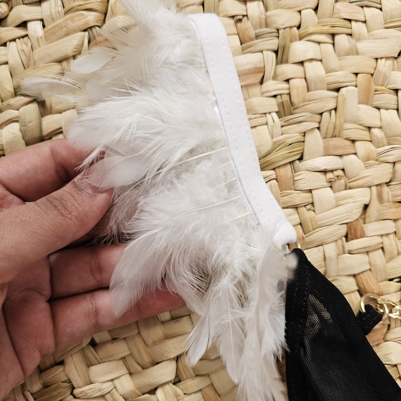 ست شورت و سوتین زنانه پردار فانتزی کیفیت عالی زنجیر ضد حساسیت، مدل فرشته بلک اند وایت کد 1882