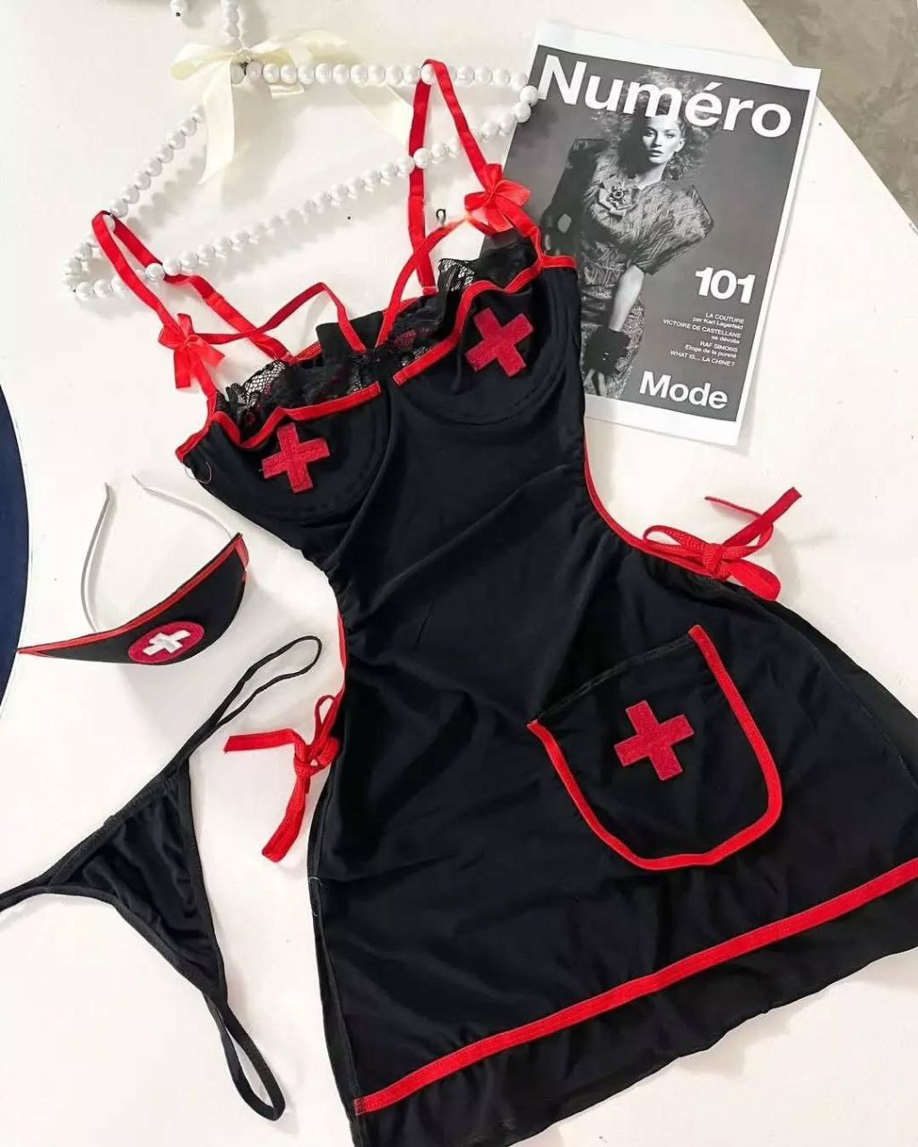ست کامل: سارافون، شورت، قطعه دامن پشتی، تل