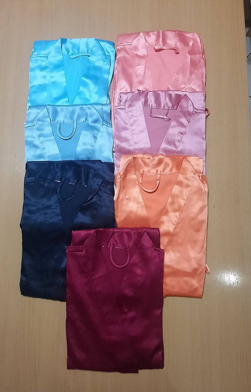 این روبدوشامبر ساتن زیبا و ساده با کیفیت عالی، دارای جعبه در رنگبندی صورتی، گلبهی، زرشکی، سورمه ای، آبی درباری، آبی ، یاسی، سایزبندی (۳۶-۴۰)L و (۴۲-۴۴)XL میباشد.