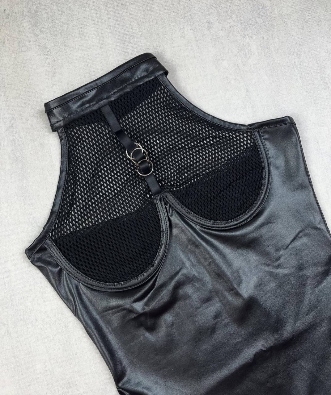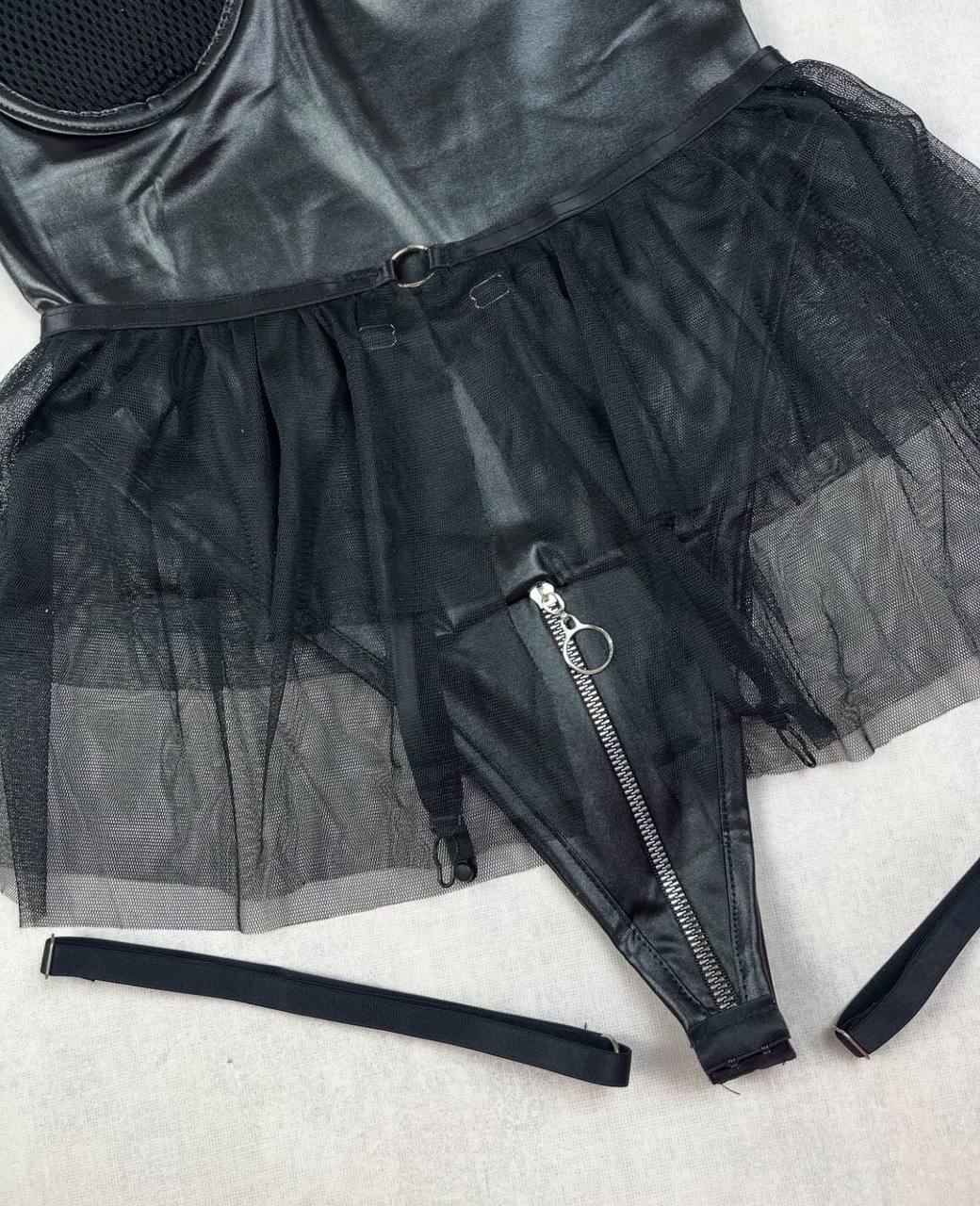 این ست بادی و بند جوراب زنانه فانتزی فوقالعاده خاص و جذاب با کد 1046 از جنس پارچه طرح چرم و تور زنبوری ریز بافت + تور ساده مدل سینه فنر دار و فاق زیپی قزندار منا سب سایزبندی: (۴۲-۴۴)L(۳۸-۴۰)-XL میباشد. برای دیدن عکس تنخور اینجا کلیک کنید.