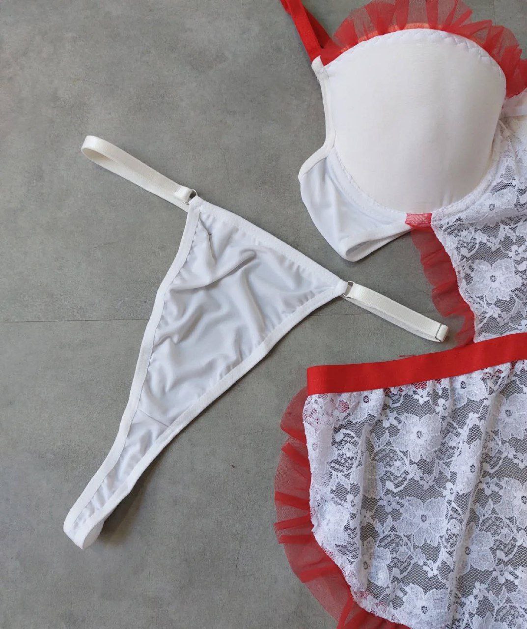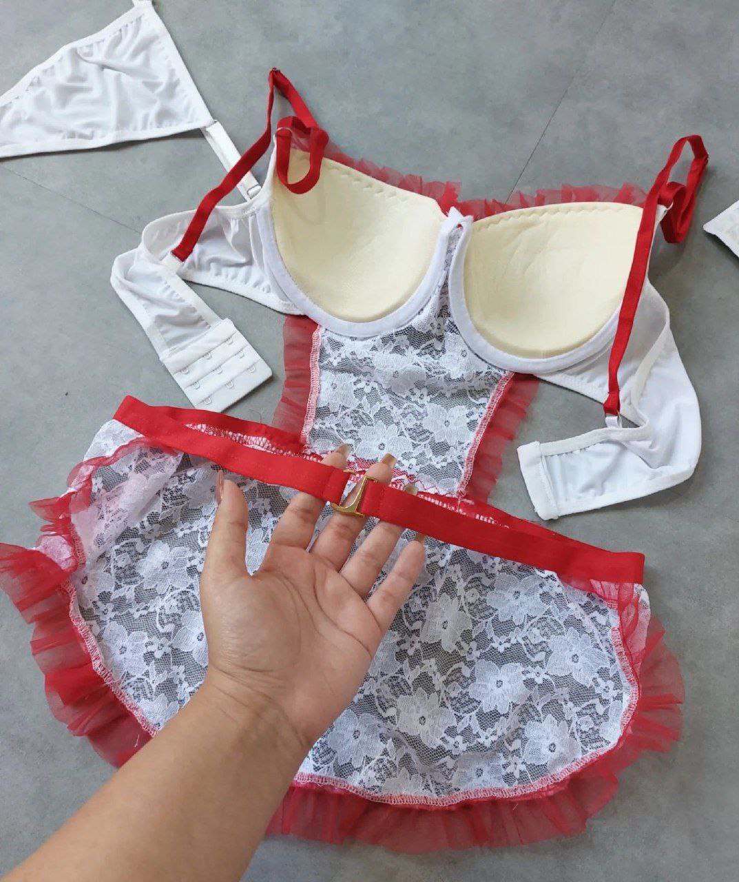 این ست کاستوم پرستاری ۳ تکه جذاب با تنخور فوقالعاده با کد M342 از جنس گیپور کشی و سارافون کاپدار فنردار، مناسب سایزبندی (۴۲-۴۴)L(۳۶-۴۰) ,XL میباشد. برای دیدن عکس تنخور اینجا کلیک کنید.