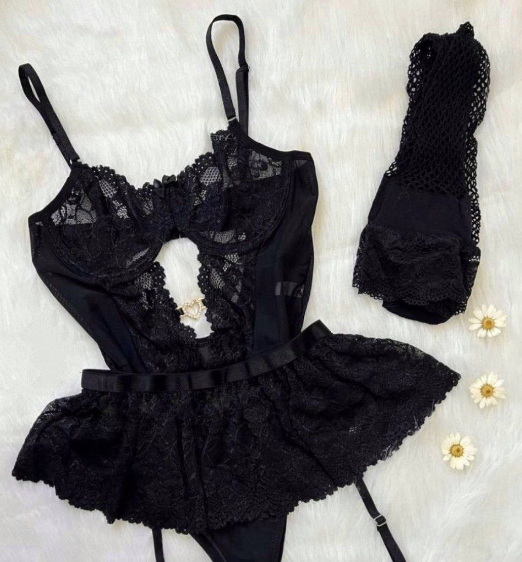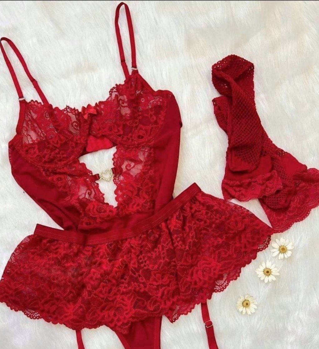 این ست لباس زیر زنانه فوقالعاده جذاب ۳ تکه شامل بادی فنردار و فاق باز، بند جوراب دامنی گیپور، جوراب ساق بلند زنبوری بالا تور دار با کد 8009 و رنگبندی سرخابی، قرمز، آبی، مشکی مناسب سایزبندی (۸۰-۸۵)L(۷۰-۷۵) ,XL میباشد. برای دیدن عکس تنخور اینجا کلیک کنید.