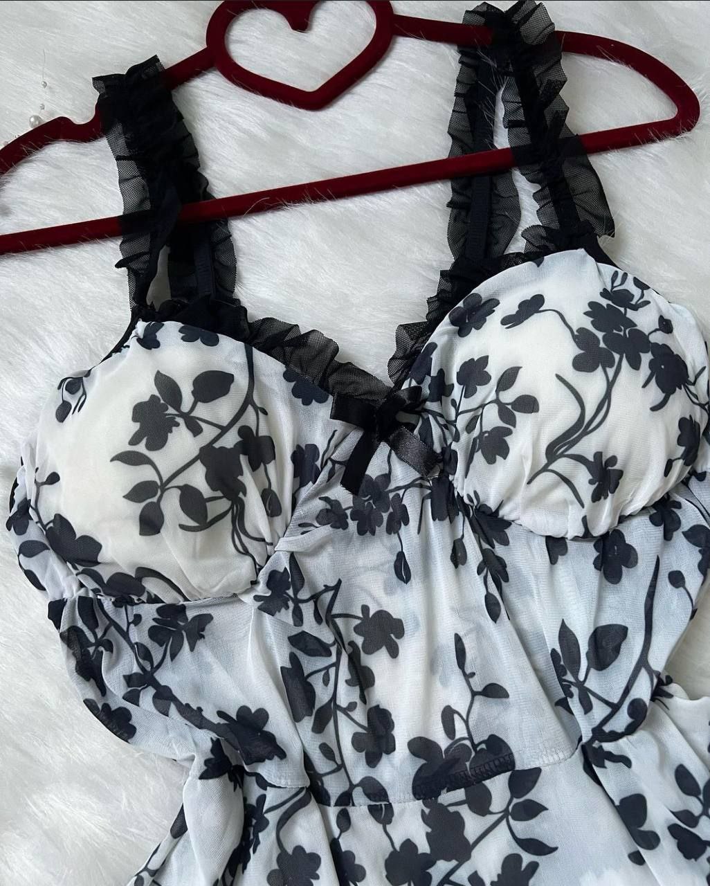 قسمت سینه کاپدار، بند سرشانه حریر مشکی چیندار