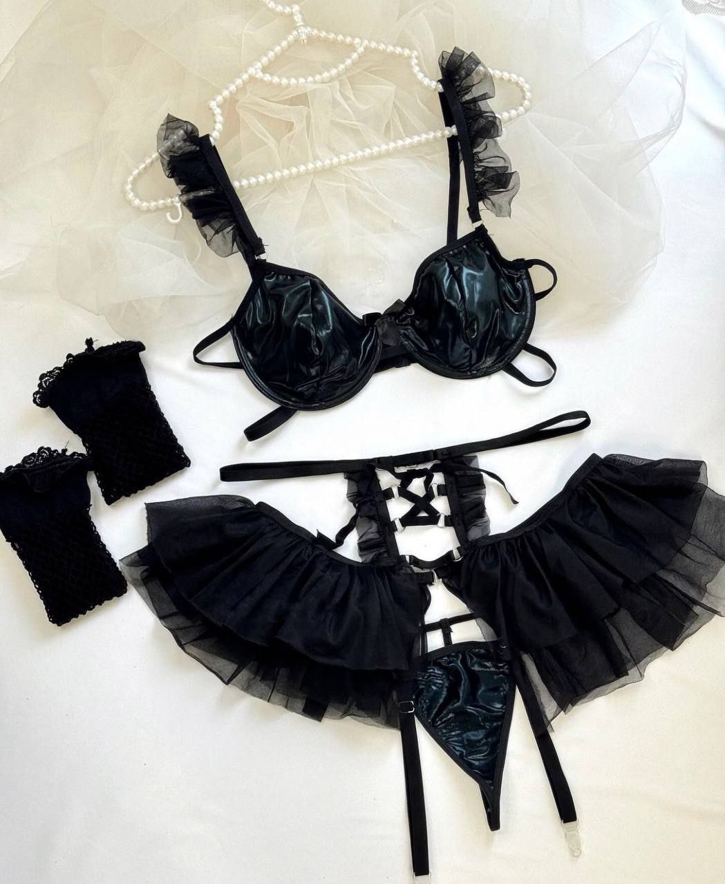 این ست لباس زیر ۴ تیکه فانتزی زنانه فوقالعاده زیبا و خاص با کد 0M01 از جنس پارچه طرح چرم و تور با کیفیت عالی مناسب سایزبندی (۸۰-۸۵)L(۷۰-۷۵), XL میباشد. برای دیدن عکس تنخور اینجا کلیک کنید.
