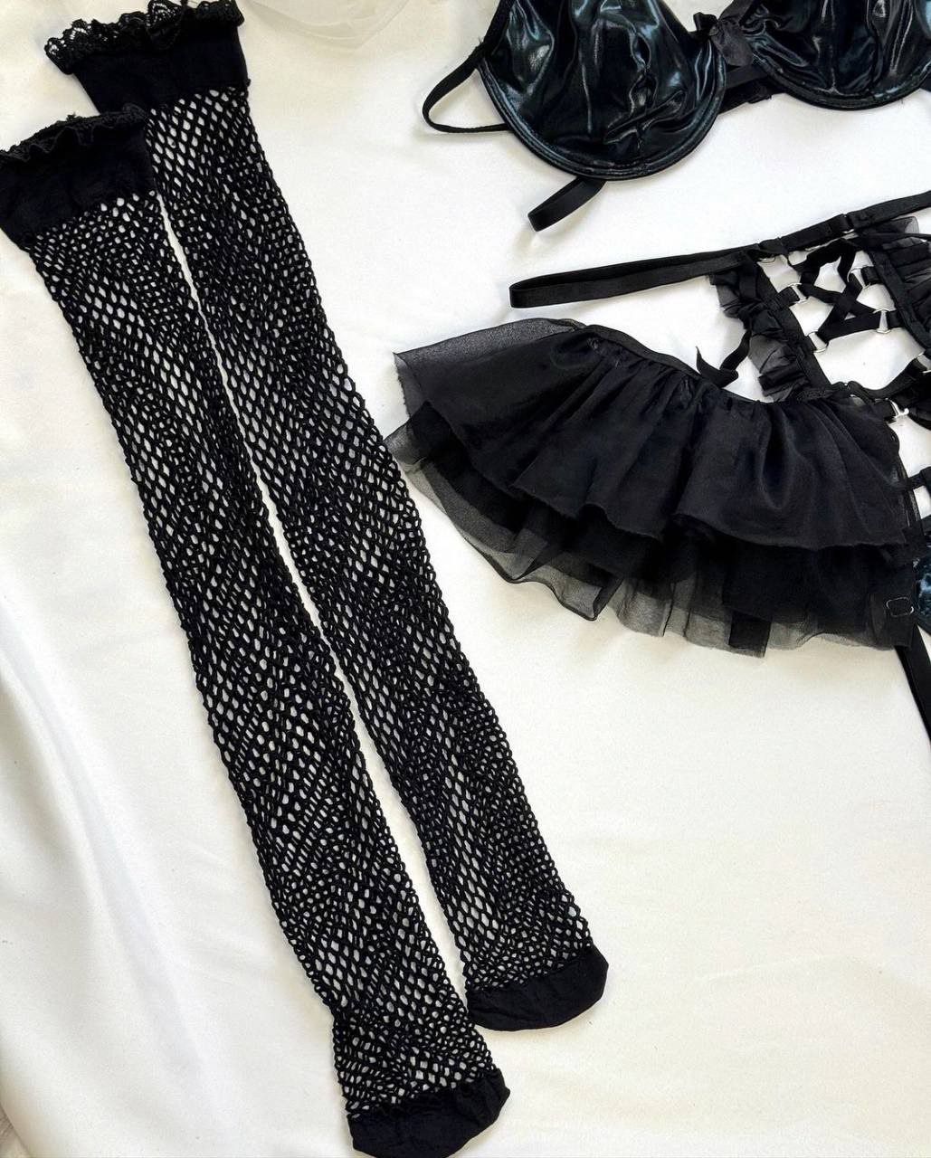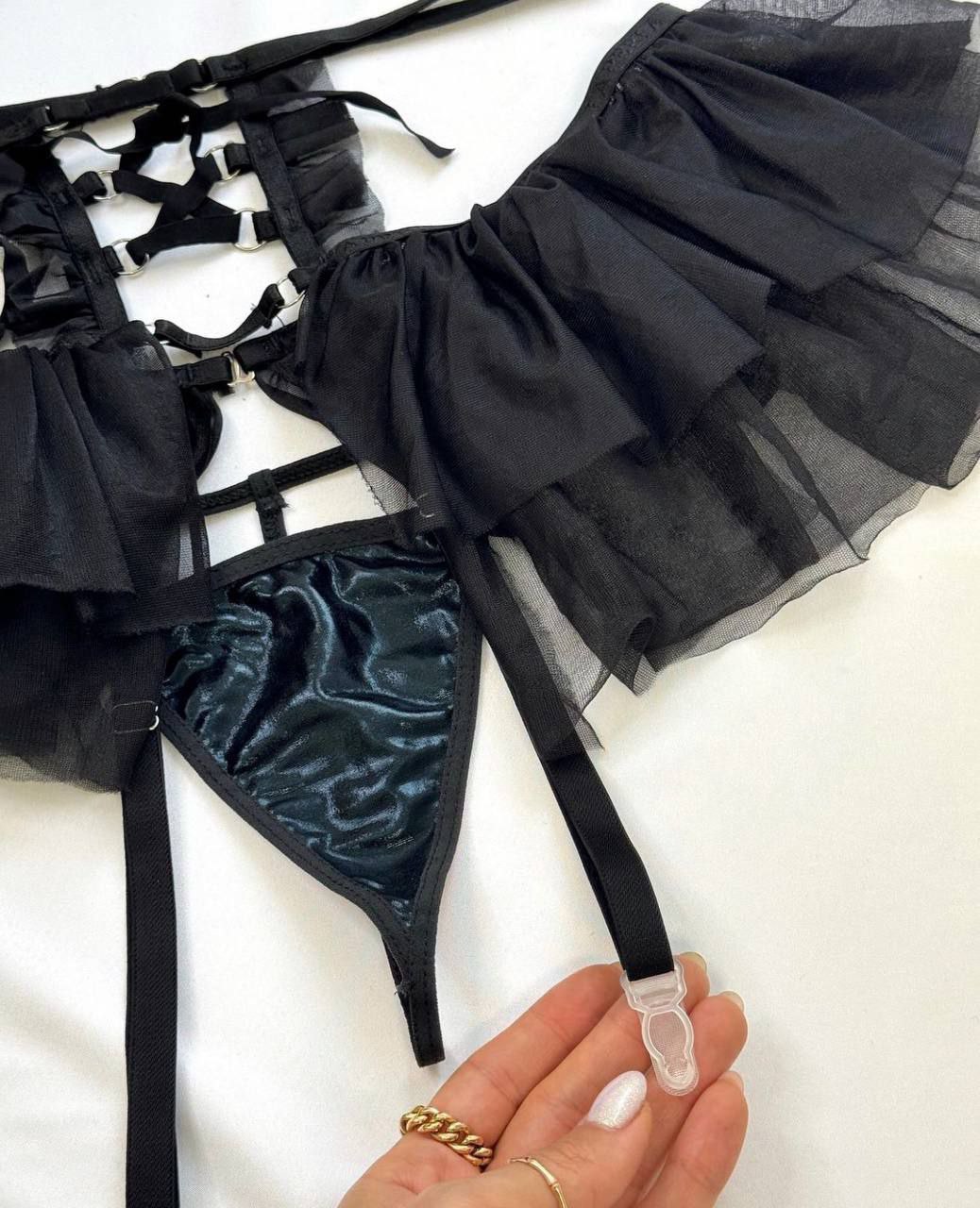 ست کامل: سوتین، شورت، بند جوراب، جوراب