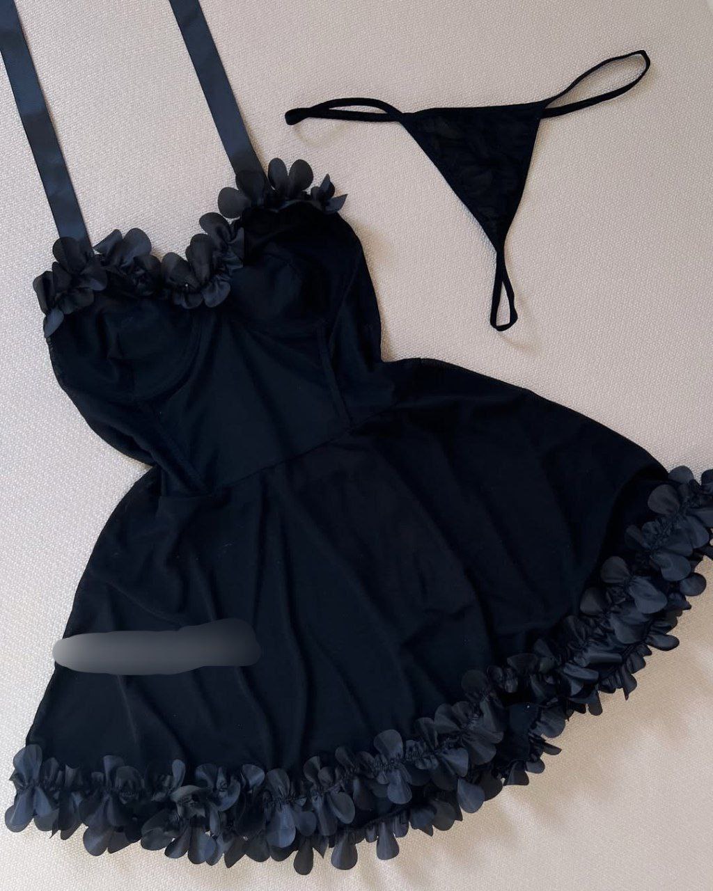 مدل لباس خواب: بند سرشانه روبان گره ای، قسمت سینه فنردار، دامن کلوش