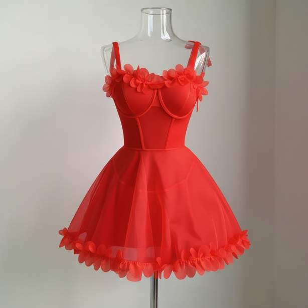 بند سرشانه روبان گره ای، قسمت سینه فنردار، دامن کلوش
