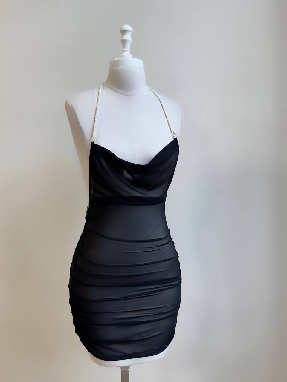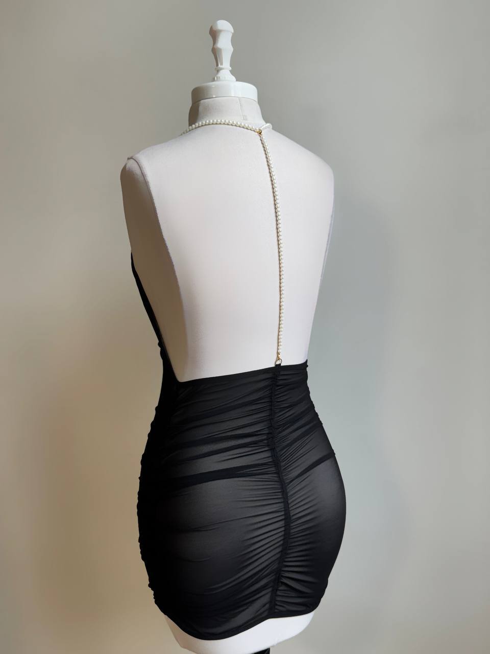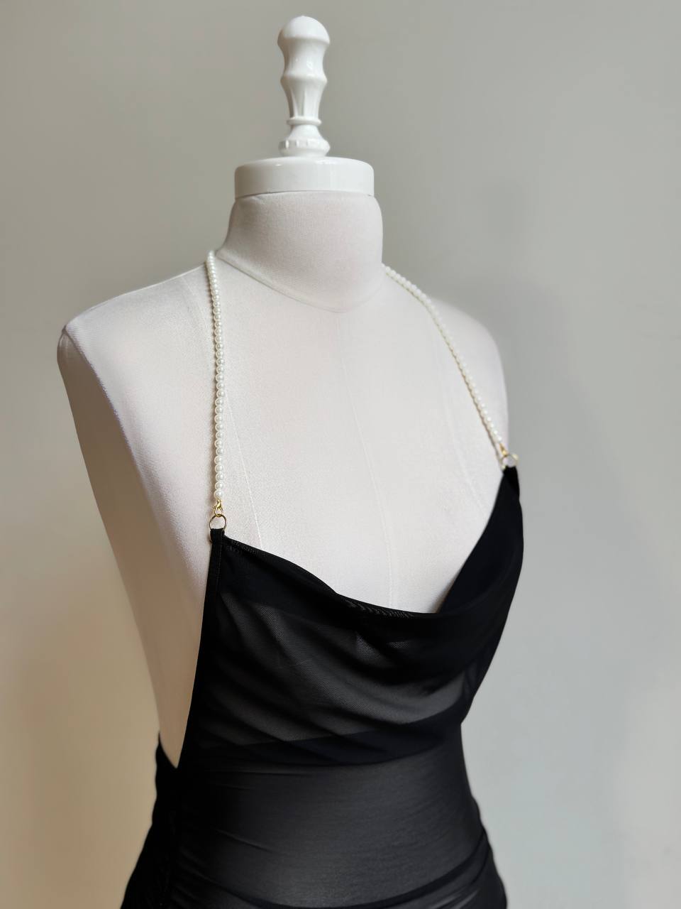 مدل یقه شل، بند سرشانه تا پشت کمر مرواریدی، پشت باز