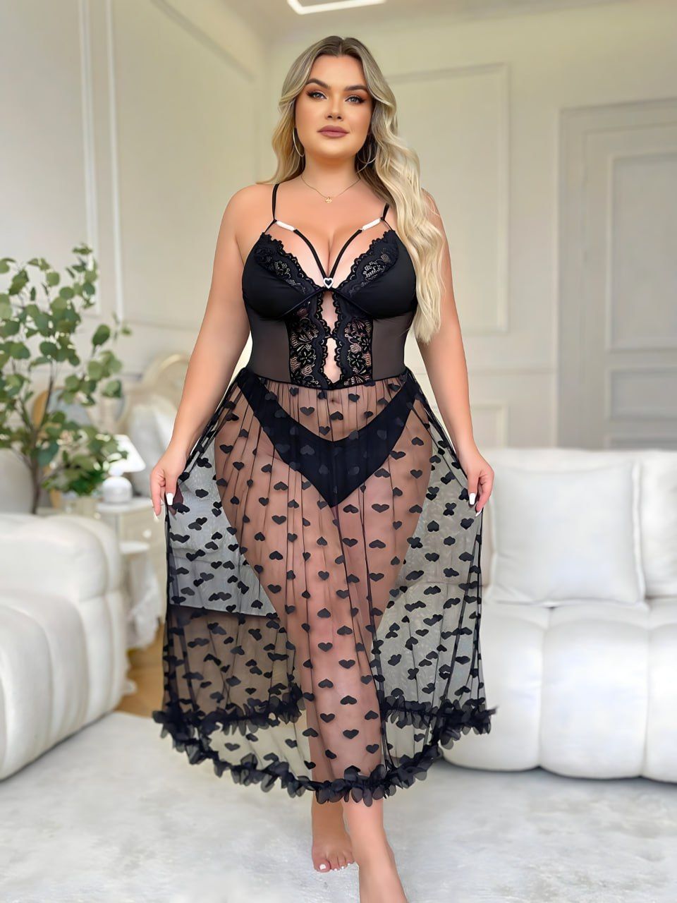 این لباس خواب فانتزی زنانه جذاب و شیک از جنس پارچه تور قلبی لطیف، سرشانه بندی، هارنس مرواردی با کد 1225 مناسب بیگ فری سایز از ۴۴ تا ۵۰ میباشد. برای دیدن عکس تنخور اینجا کلیک کنید