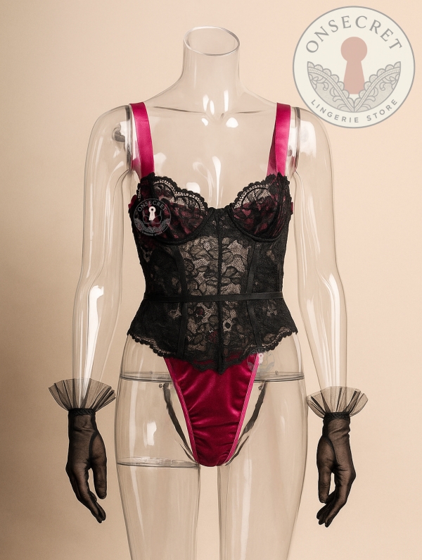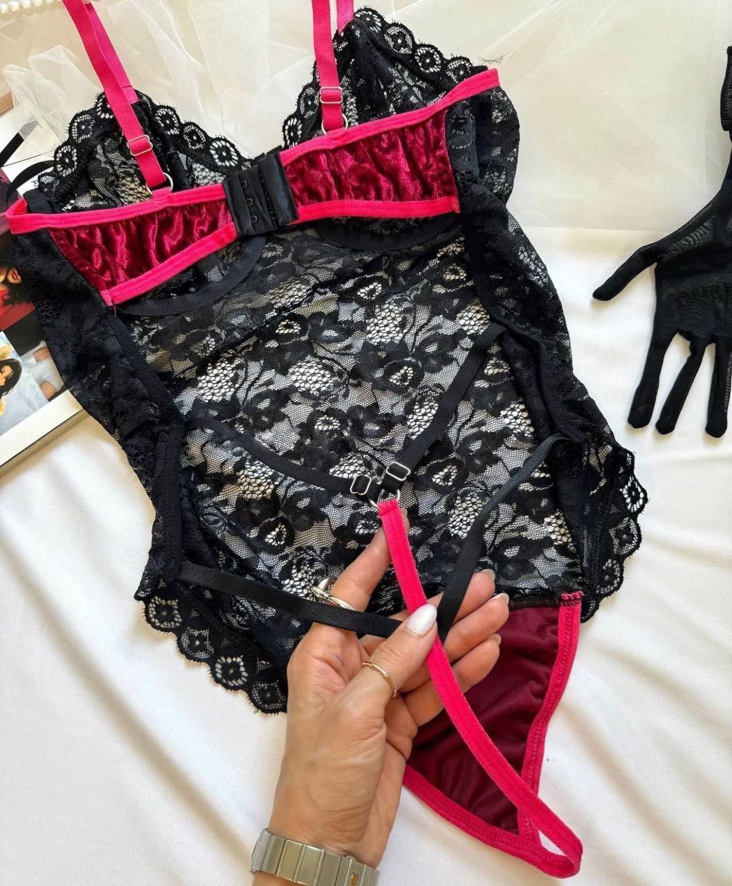 این بادی فانتزی جذاب زنانه همراه با دستبند با کد 7035 از جنس دانتل تمام کش و مخمل اعلا مدل کاپ سینه فنردار و فاق بکلس مناسب سایزبندی (۳۶-۴۰)XL(۴۲-۴۴) /L میباشد. برای دیدن عکس تنخور اینجا کلیک کنید.