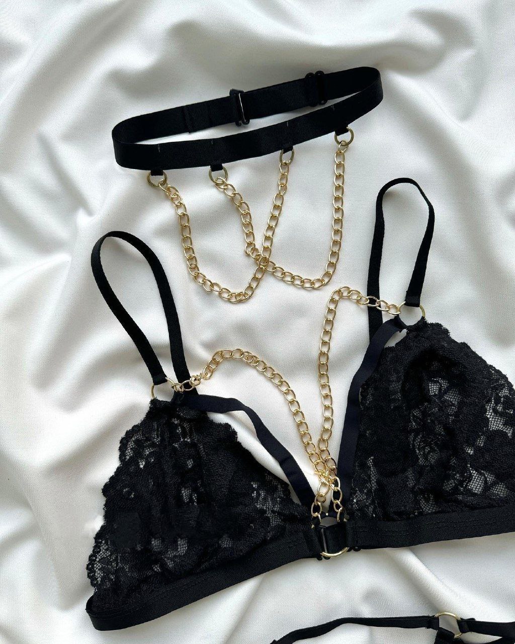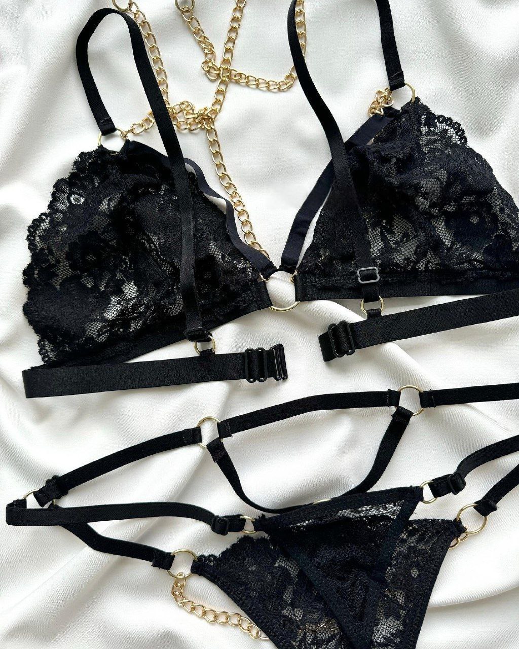 ست لباس زیر زنانه فانتزی زنجیری سه تکه کد: 1071