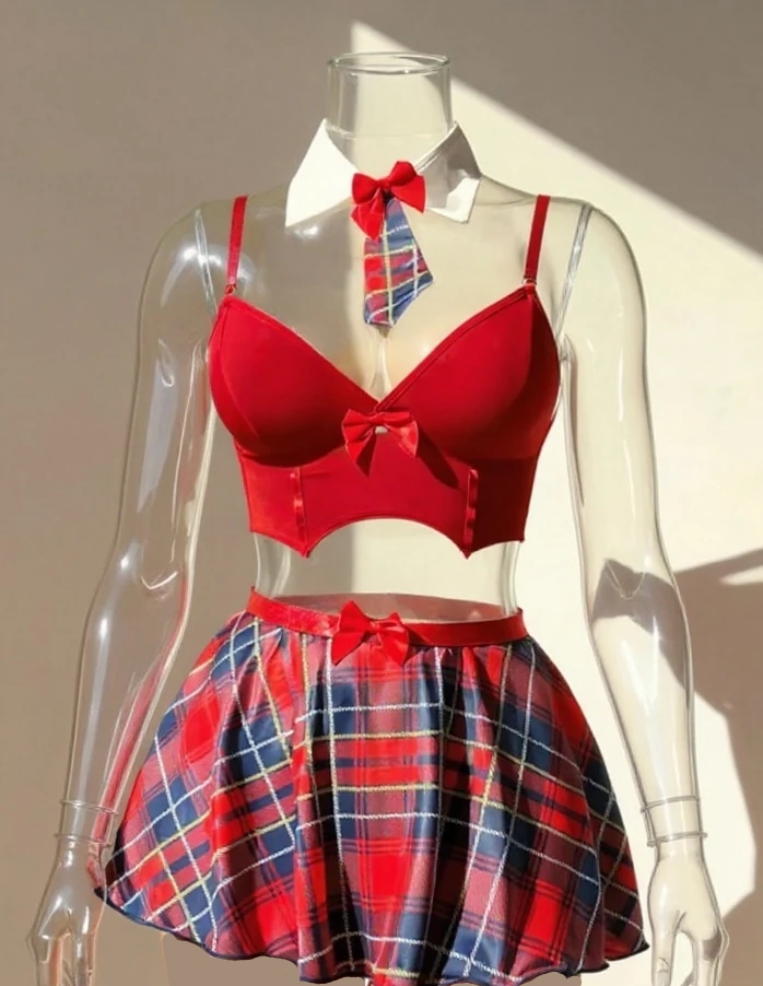 این ست کاستوم جذاب و خاص با طراحی خلاقانه و رنگبندی چشمنواز، انتخابی فوقالعاده برای خانمهایی است که به دنبال لباس زیر متفاوت و فانتزی هستند. ست چهار تکه شامل نیمتنه، دامن کوتاه چهارخانه، یقه و جوراب فیشنت، استایلی شیک و پرانرژی به شما میبخشد و برای موقعیتهای خاص یا حتی تم فانتزی بسیار مناسب است. برای دیدن عکس تنخور اینجا کلیک کنید