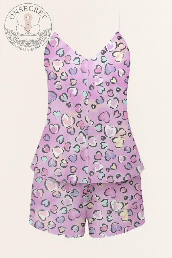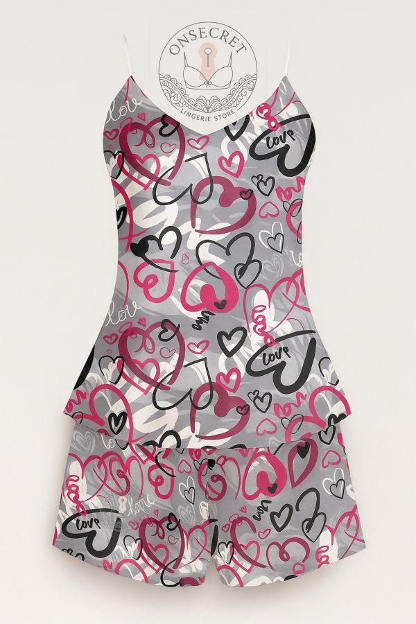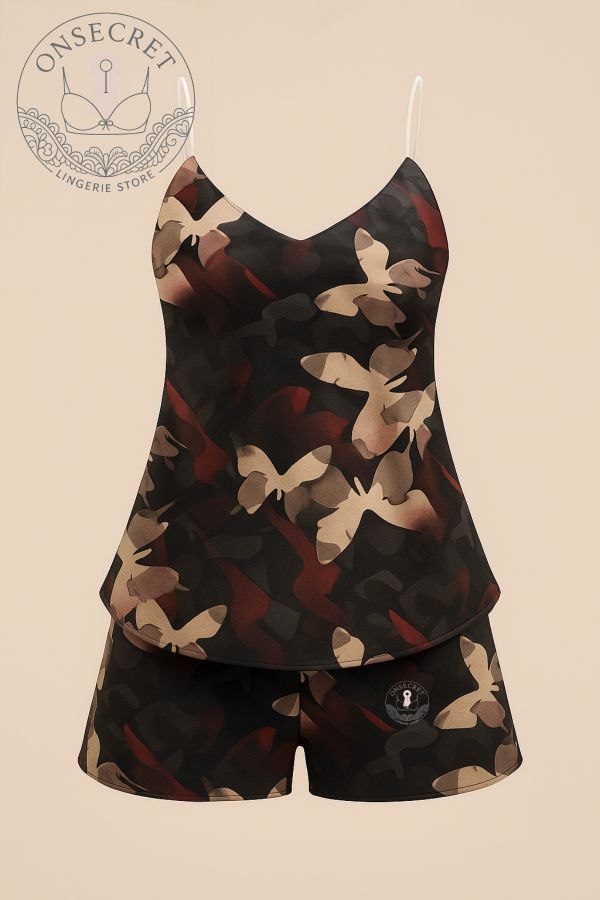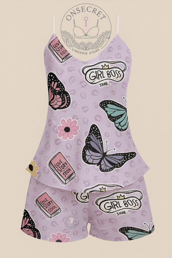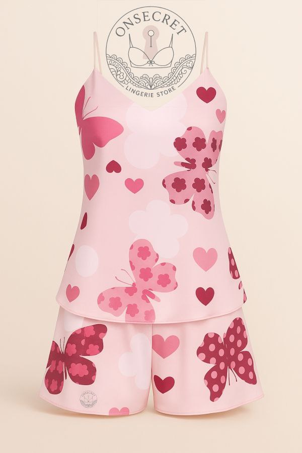 این ست تاپ و شورت با پارچه ساتن لطیف و براق، حس خنکی و راحتی را برای لحظات استراحت و خواب شما به ارمغان میآورد. طراحی جذاب با ترکیب رنگهای صورتی و نقش پروانهها و قلبهای فانتزی، جلوهای دخترانه و شاد به این ست بخشیده است. بندهای ظریف و برش آزاد تاپ، آزادی حرکت بیشتری ایجاد میکند و شلوارک کوتاه آن، استایل را کامل میسازد. برای دیدن عکس تنخور اینجا کلیک کنید