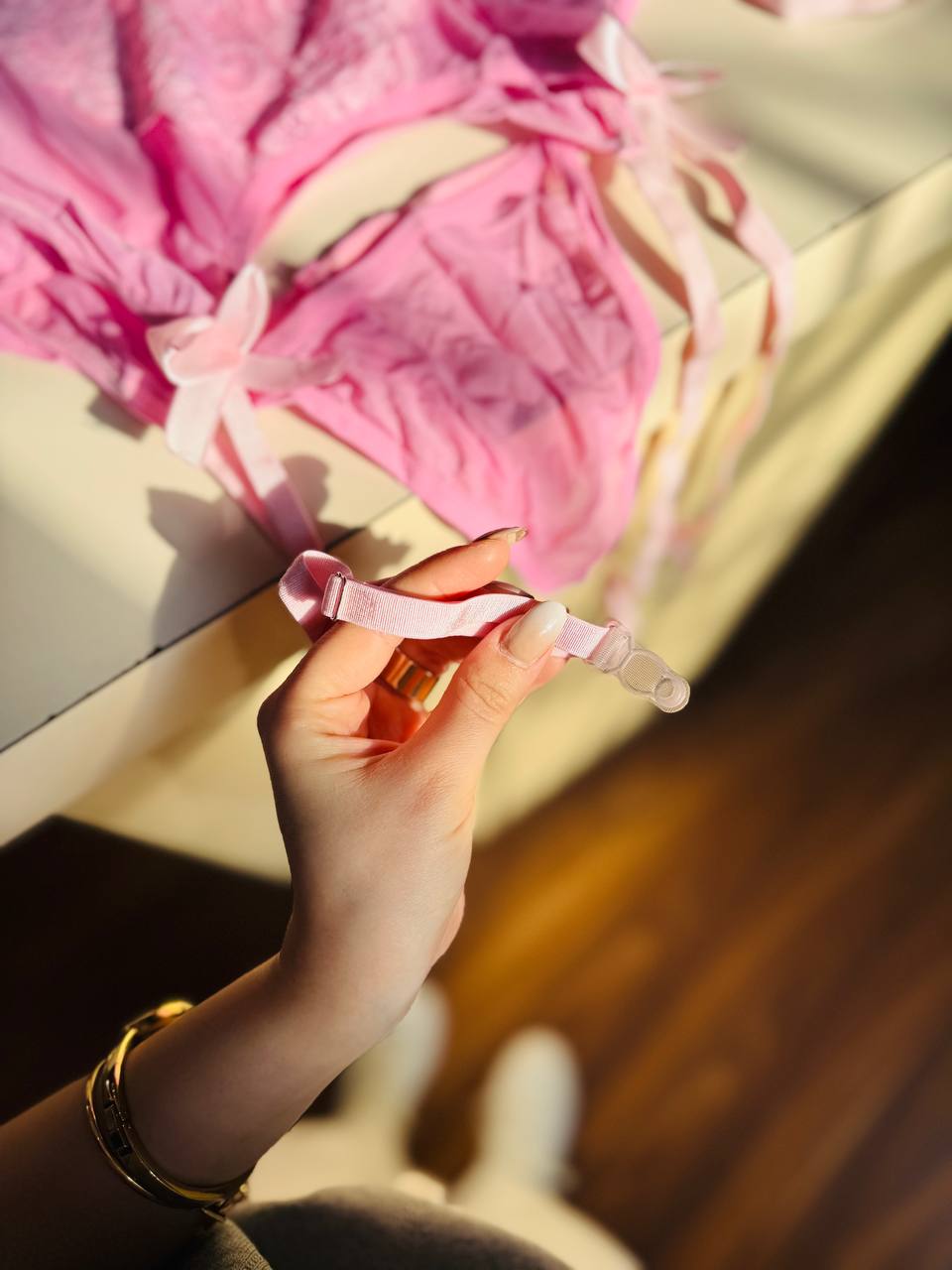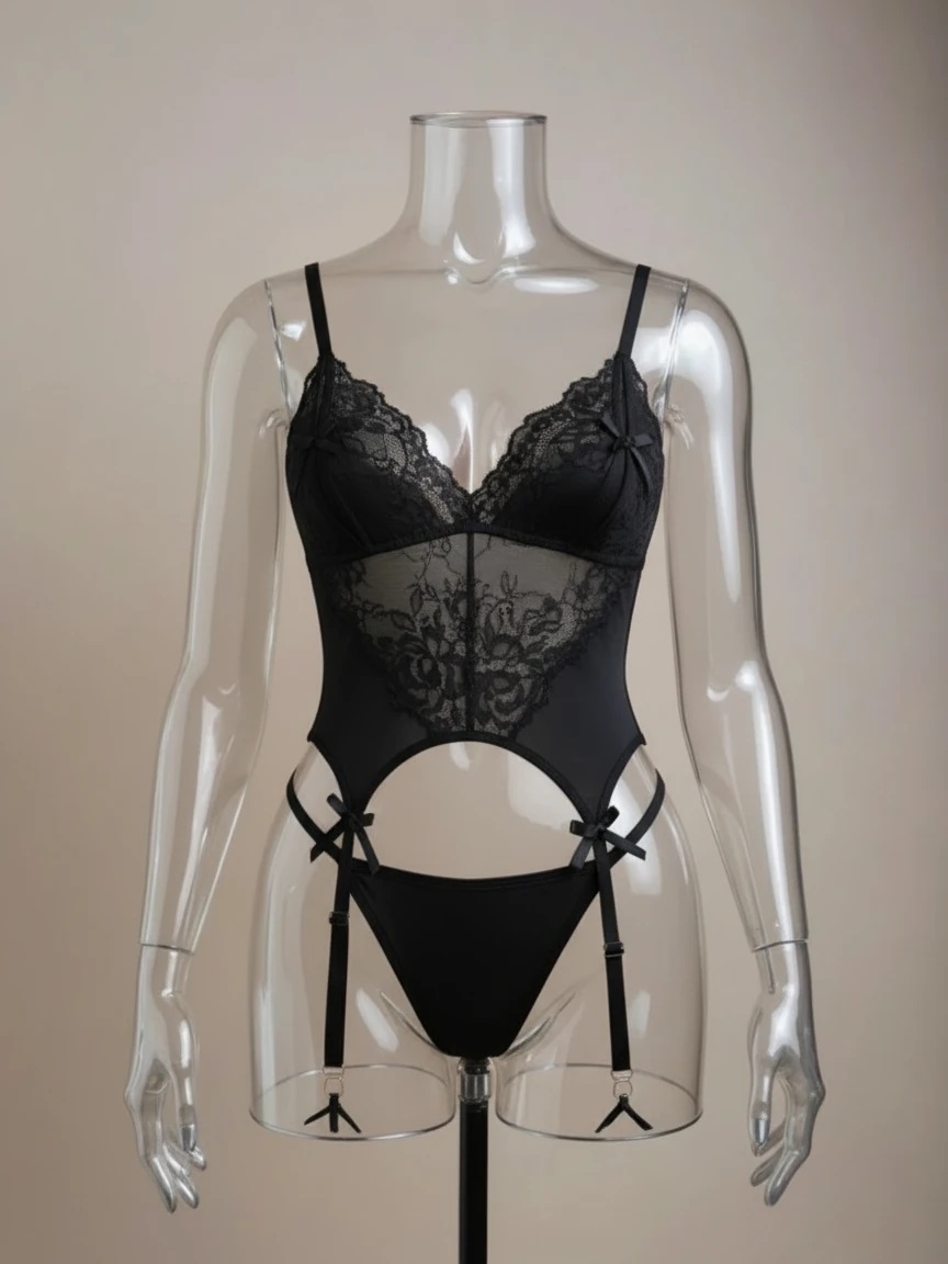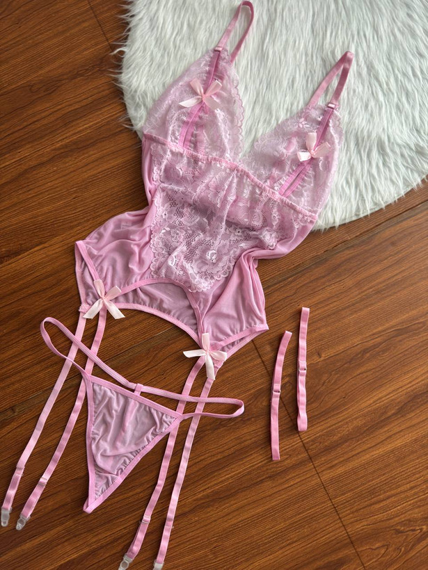بند سرشانه رگلاژدار، کاپ سینه شیاردار، با بند جوراب متصل