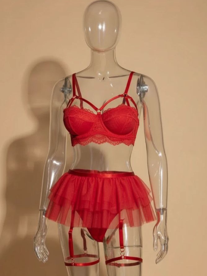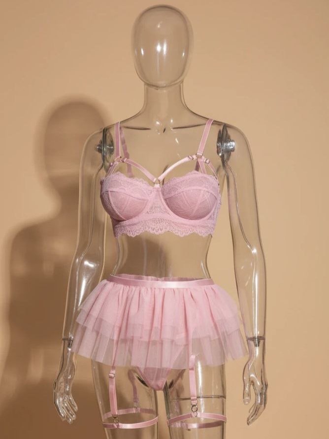 این مدل لباس زیر فانتزی زنانه ۴ تکه فوقالعاده خاص، با توجه به کاپ سینه دکلته و هارنس های رگلاژدار آن فرم خاصی به سینه میبخشد، بند جوراب متصل به دامن آن هم جوراب را در جای خود نگه میدارد هم جلوه زیبایی روی بدن دارد. این ست مناسب استایل های خاص یا موقعیت های رمانتیک شماست. برای دیدن عکس تنخور اینجا کلیک کنید