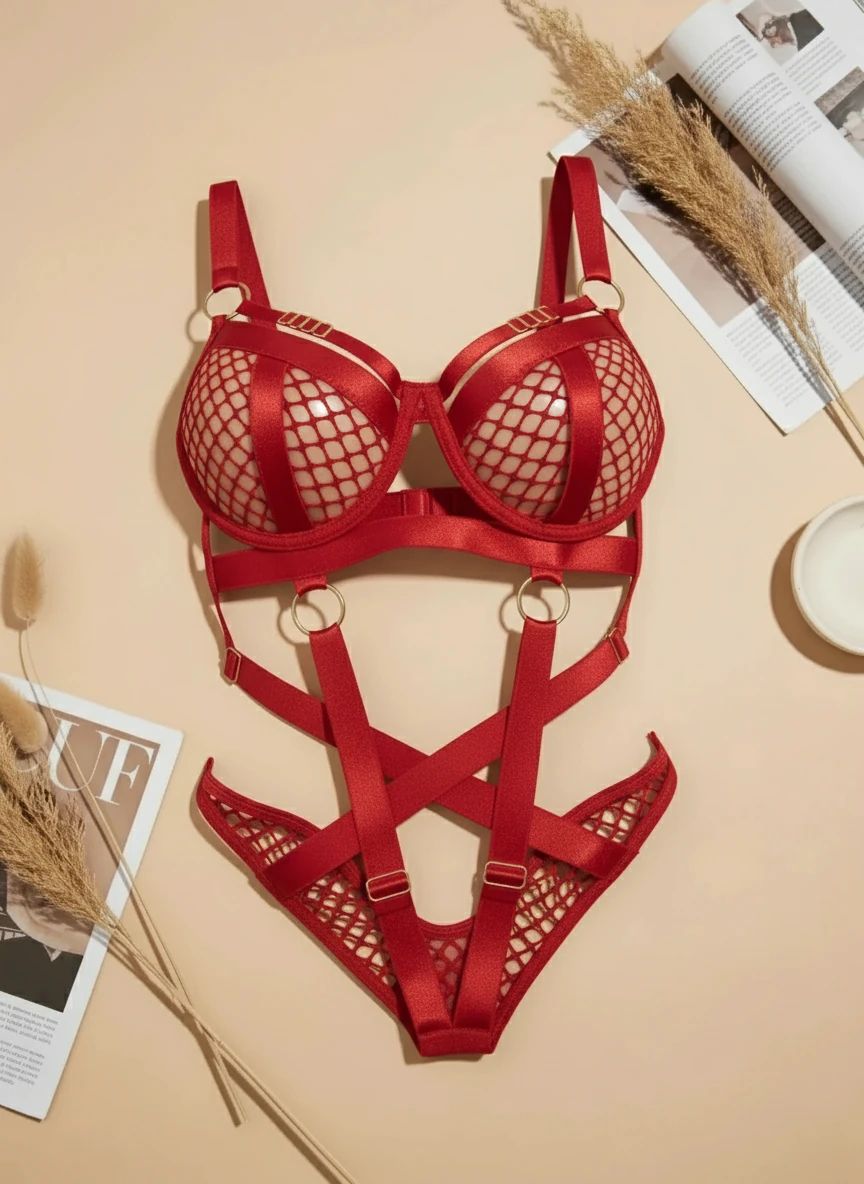 این بادی فوقالعاده خاص که قسمت سینه و فاق آن تور فیشنت بوده و بدنه آن بندهای ضربدری تنظيم شونده دارد یک انتخاب عالی جهت سورپرایز و موقعیت های عاشقانه است. این مدل با رنگبندی جذابی که دارد میتواند به راحتی با استایل و سلیقه شما ست شود. برای دیدن عکس تنخور اینجا کلیک کنید