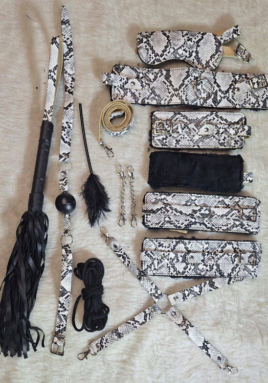 این ست بی دی اس ام ۱۲ تکه از جنس چرم مصنوعی با قطر ۱ میلیمتر و با لایه پارچه خزدار که پشت آن دوخته شده ، شامل چشمبند، دهانبند، قلاده، بند قلاده، رابط چهارطرفه ضربدری، دو عدد دستبند، دو عدد پابند، و طناب است. تصاویر از خود محصول گرفته شده و ژرنالی نیستند. این مدل برای افراد با وزن بالا و بسیار درشت هیکل مناسب نیست.