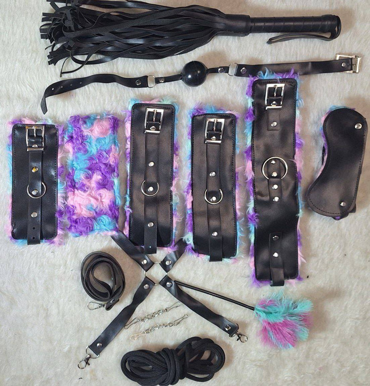 چشمبند، دهانبند، قلاده، بند قلاده، رابط ۴طرفه ضربدری، دو عدد دستبند، دو عدد پابند، طناب، پر