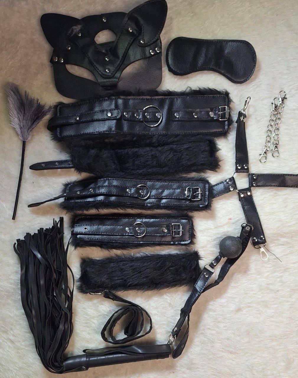 ست کامل گارتر فانتزی از جنس چرم مصنوعی پشت خزدار ۱۲ تکه کد B014