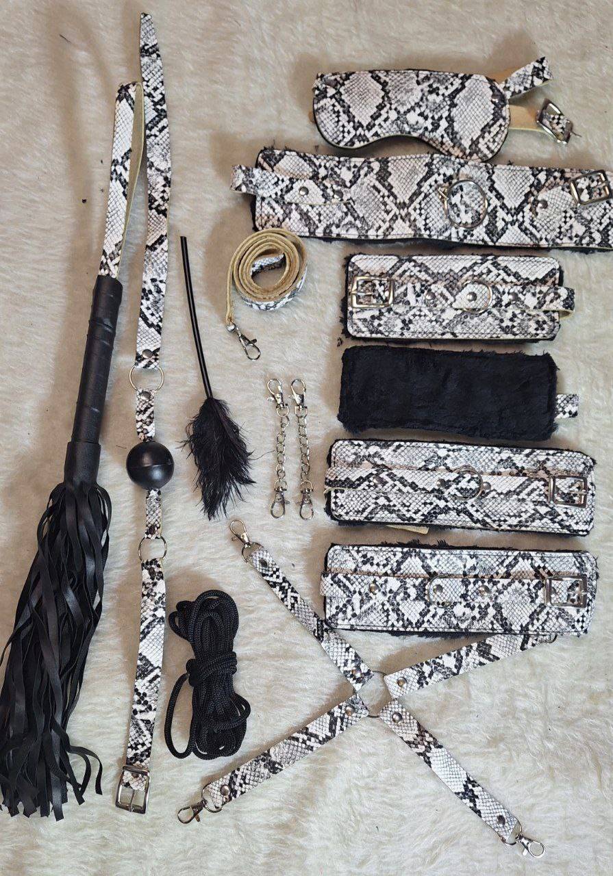 ست کامل گارتر فانتزی از جنس چرم مصنوعی پشت خزدار ۱۲ تکه کد B012