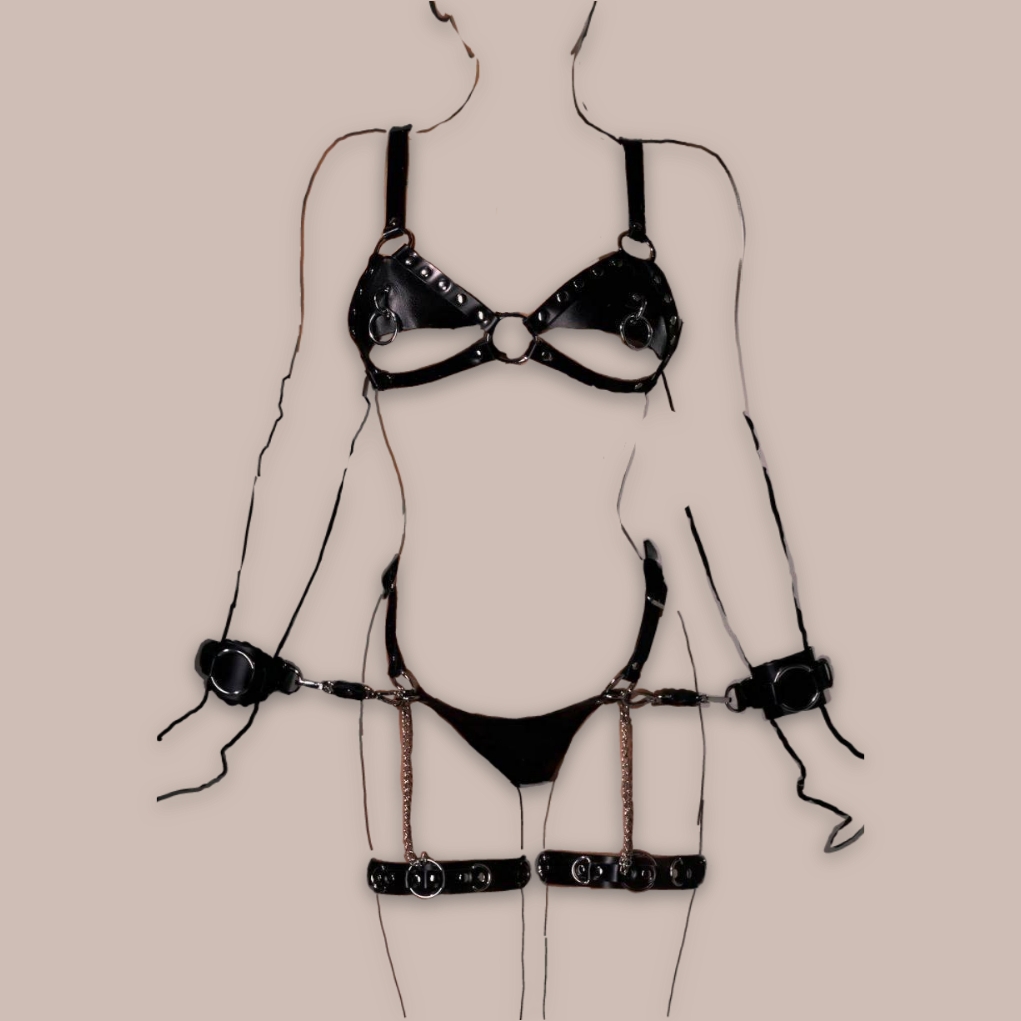 ست گارتر فانتزی ۱۰ تکه چرم به همراه ۴ رابط زنجیری کد 1022