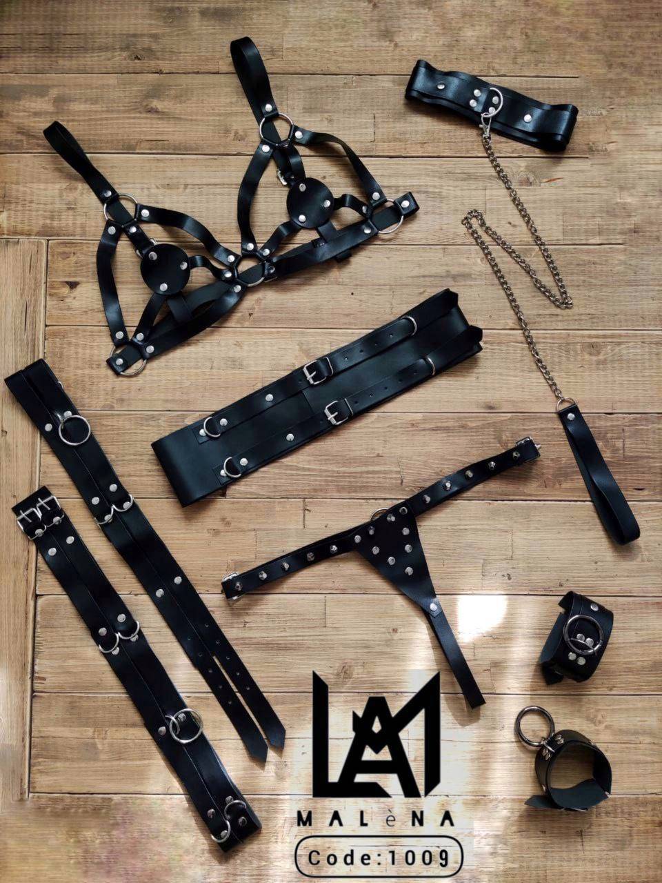 ست گارتر فانتزی ۹ تکه از جنس چرم مصنوعی کد 1009